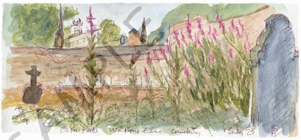 Notes: | Sketch of rosebay willowherb in Warstone Lane cemetery, with the catacombs in the background, done on a sketching day with Hall Green Art Society. A particularly grey day, which made the flowers really stand out (I didn't find the catacombs particularly inspiring |