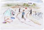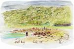 Welcome to my little gallery. Below, you'll find collections of my textiles, paintings and drawings, classified into broad groups. Click on one to see other related pictures, then click on any of these for a larger image. The originals of textiles and pictures are probably available where I have given a price; prints, notecard and postcard reproductions are available for the paintings and sketches.