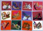 These are one-off cards which I have produced for sale. They generally include hand dyed fabrics, and/or tatting, and/or images either from scanned and printed watercolours or from printed textiles. These are then machine embroidered and mounted in "window" cards or mounts (depending on size). Originals have probably already been sold, but I can produce something similar to order.