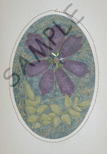 | Notes: | Purple geranium petals and winter jasmine leaves trapped under a layer of chiffon with machine embroidery |