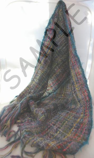 | Notes: | Mohair/nylon shawl woven on a scarf loom. Started at my Open Studio in November 2017, using a skein of Colinette space-dyed mohair/nylon for the warp, and various different mohair/nylon yarns for the weft. A continuation of my celebration of views of Birmingham at night |