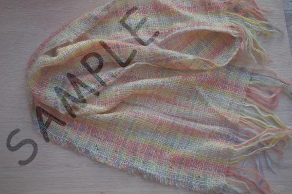 | Notes: | This was woven on a saga loom in natural dyed mohair/nylon. The warp (which goes across the scarf) was dip-dyed in a range of dyebaths at a demonstration. Produced for my mother-in-law in 1995 |
